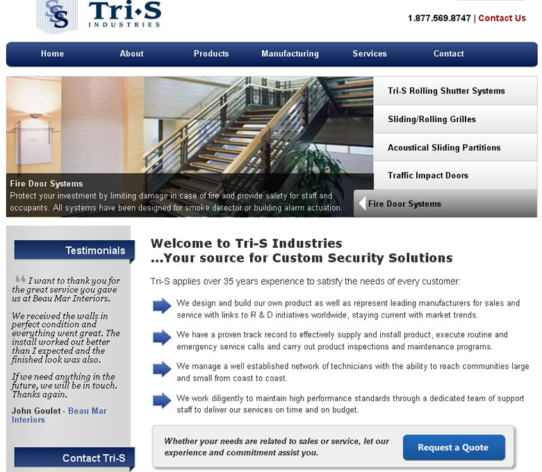 Tri-S Industries is a Mississauga based company that provides Custom Security Solutions to customers across Canada. Their products include; Sliding & Folding Grilles, Rolling & Counter Shutters, Accordion Partitions & Operable Walls, Fire Rated Products and more.